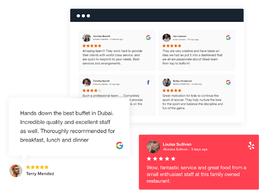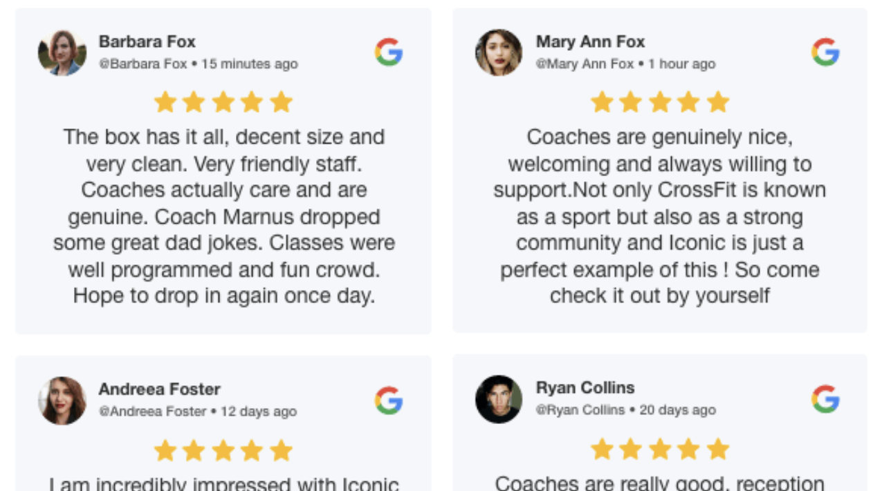 The review widget displays reviews on your business website to build consumer trust, drive conversions and impact SEO. Widgets can look like this: